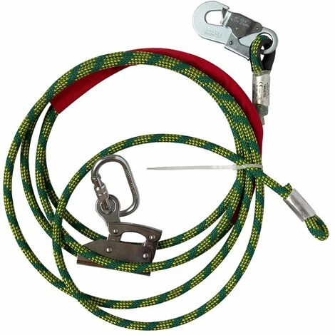 Possède également des oeillets et une gaine de protection en polyamide ainsi que des crochets à double sécurité.
