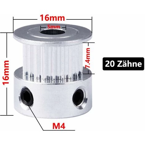 Poulie GT2 : dents : 20, diamètre d’alésage : 5 mm. Dimensions : 16 x 16 x 16 mm, lot de 5.
