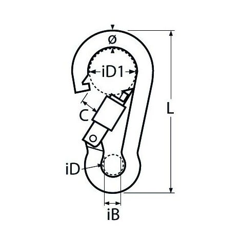 Ouverture très rapide avec un grand angle avec vis de sécurité, peut être utilisé comme petit crochet, à utiliser pour de faibles charges. Inox AISI 316