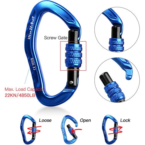 Chaque mousqueton peut contenir jusqu’à 22KN (2200kg / 4850lb), avoir une bonne capacité de charge.