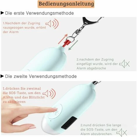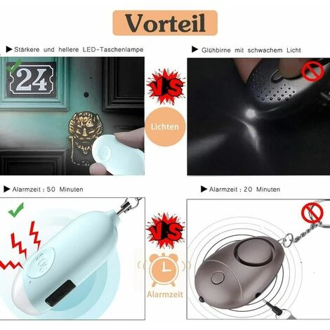 Avertissement sonore : le piercing sirène de 130 dB est assez fort pour attirer l’attention et dissuader l’attaquant. Les sonneries peuvent durer 50 minutes et ne pas blesser vos oreilles progressivement avec une forte puissance.