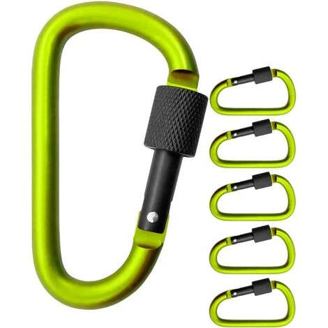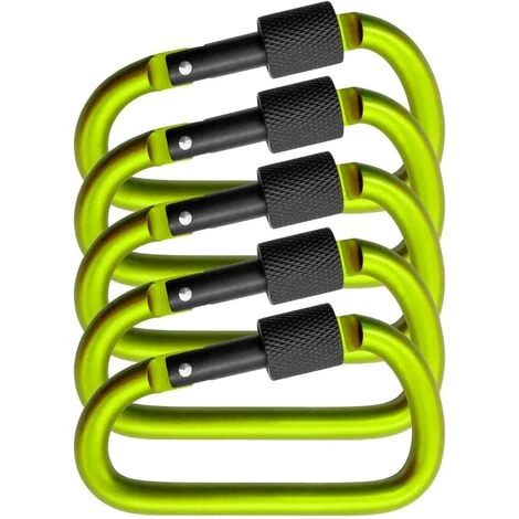 Lot de 5 mousquetons à vis en aluminium de 8 cm x 4,2 cm avec fermeture à ressort à vis