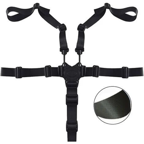 Courroie sécuritaire à 5 points d’utilisation conviviale pour poussette, buggy, chaise et siège bébé.
