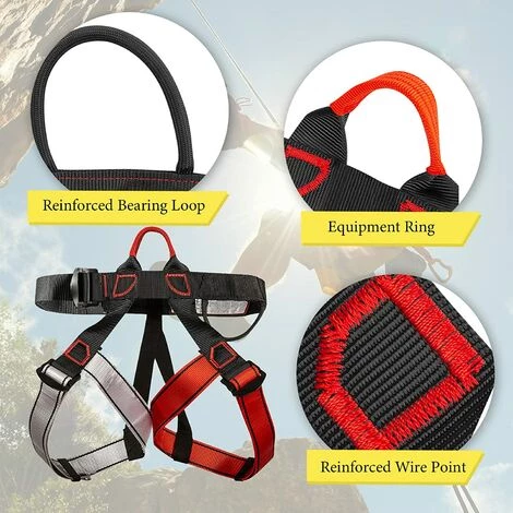 Sécurité: ce harnais d’escalade a passé la certification CE, limite de poids : 300 kg. Tension ≥ 15kN, force d’impact ≤ 6kN.