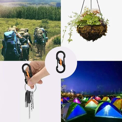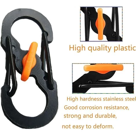 Facile à utiliser : Le mousqueton en forme de S est simple et pratique à utiliser. Il vous suffit de faire pivoter la boucle en plastique au milieu du crochet du porte-clés à la main, puis d’appuyer sur les ressorts des deux côtés pour suspendre de petits objets.