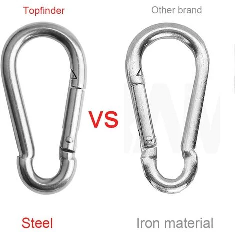 Le mousqueton est en acier inoxydable 304, surface lisse, durable, antirouille et résistant à l’usure.