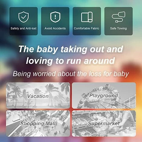 You can attach the child anti-lost wristband to an adult’s hand, stroller or even a backpack, perfect for supermarkets, parks, malls, airports and frequented places.