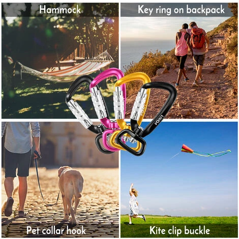 | verrouillage automatique mousqueton et anneau relié à un axe métallique, lisse et sans friction, pouvant tourner de 360 ° pour empêcher la torsion de la corde du hamac ou la laisse animal. Fonctionnalité: 1100lb capacité de coupure. 360 ° rotation libre pour empêcher la torsion de la corde hamac ou laisse animal. aluminium supérieur construit. Super léger et de petite taille pour un fonctionnement pratique. Fiable pour être un clip hamac, connexion laisse animal, anneau de suspension sur la fixation de la bouteille et sac à dos sport. Spécification: Matériel: Aluminium 7075 Couleur: Noir-D / Gold-D / Black-C / Rose-C (en option) Briser la capacité: 500 kg / 1100LB Ouvrir la porte: 11.5mm / 0.45in Poids: 24 g / 0,8 oz Longueur: 8.6-9.1cm / 3.3-3.5in Largeur: 3,9 cm / 1.5in Poids du colis: 26g / 0,9 oz Liste paquet: |