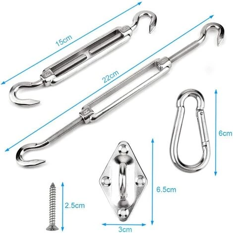 Pratique: L’ensemble d’attaches d’auvent est facile à utiliser et parfait pour la plupart des voiles d’ombrage pour accrocher votre auvent en toute sécurité et facilement.