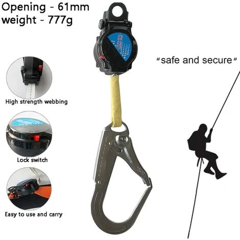 Protection contre les chutes – Antichute à Rappel Auto, qui peut rapidement freiner et verrouiller les personnes qui tombent accidentellement à une distance limitée. Il est très approprié pour le toit, la construction ou les travaux aériens.