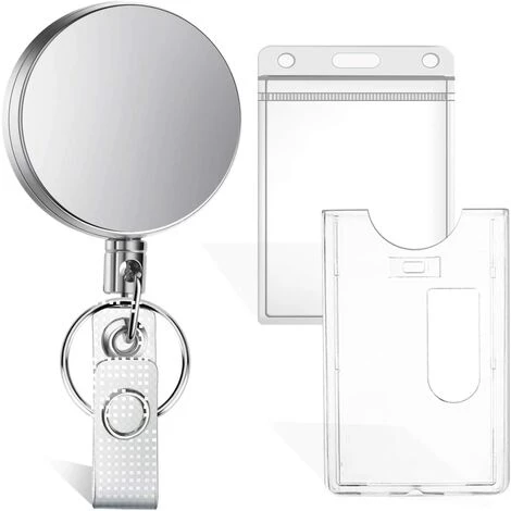 Porte-carte d’identité en plastique robuste et porte-fermeture éclair : Badge Reel Set est également livré avec un porte-carte d’identité en plastique et un porte-carte d’identité à glissière étanche en PVC. Chaque cadre d’identification convient aux cartes de crédit de taille normale, aux cartes de visite, aux cartes de permis de conduire, aux cartes d’infirmière, aux cartes à mousqueton, etc. (Noter: Ce porte-badge en plastique rigide est conçu pour les cartes simples de moins de 1 mm, pas pour les cartes plus épaisses. Le support d’identification en PVC peut contenir confortablement jusqu’à 5 cartes de taille normale)