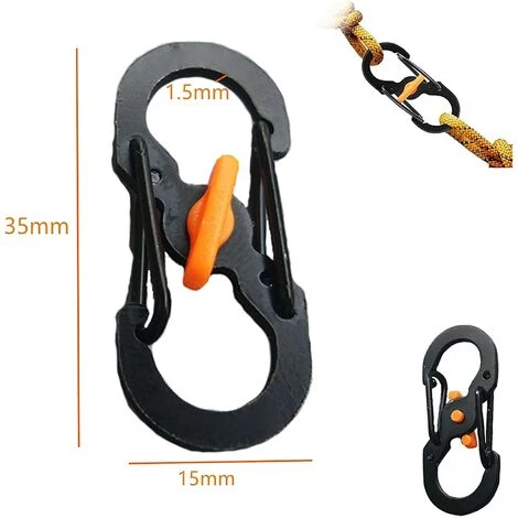 Performances de sécurité élevées : Au milieu du mousqueton à anneau en S, se trouve un petit levier en plastique antichoc, qui ferme les deux ouvertures du mousqueton en toute sécurité avec une simple torsion et empêche ainsi l’ouverture et la perte indésirables.