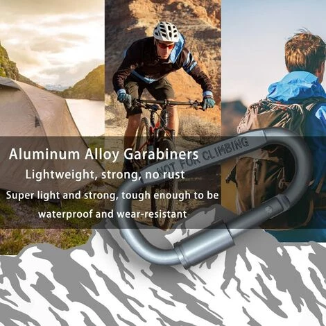 Qualité supérieure : mousqueton en D fabriqué en alliage d’aluminium de haute qualité, solide et pratique. Après polissage, le mousqueton haute résistance est imperméable, antirouille et résistant à l’usure.
