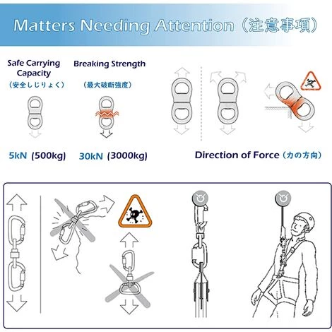 MULTIFONCTIONNEL – Le pivot de rotation convient pour l’alpinisme, l’escalade, la descente, l’expansion, la lutte contre l’incendie, le sauvetage, les opérations à haute altitude, le yoga, etc. Attention – Vérifiez si c’est normal avant utilisation et voyez s’il y a des fissures, la sécurité d’abord