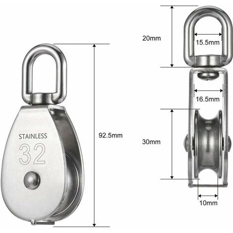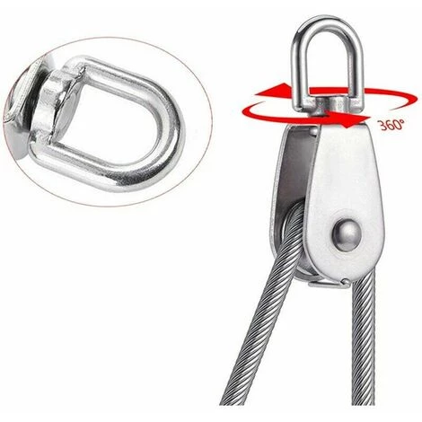 La conception ergonomique, la partie supérieure solide rend la corde facile à manipuler, la poulie lisse offre une bonne capacité de mouvement de la corde, la culasse rotative de la poulie est solide et durable, peut être tournée à 360 degrés pour éviter l’enchevêtrement de la corde