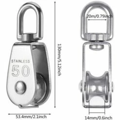 ABCRITAL Poulie Pivotante À Une Roue En Acier Inoxydable 304 M50, Chargement 400 Kg – Argent