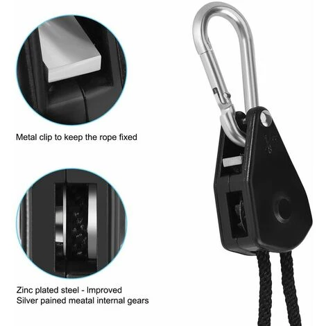 Paquet de 2 cliquets d’une capacitĂ© de charge de 150 lb, supports de corde rĂ©glables de 1/8 « convenant pour suspendre des lampes de culture, des luminaires hauts, un sac Ă scintillement et un Ă©quipement de ventilation.
