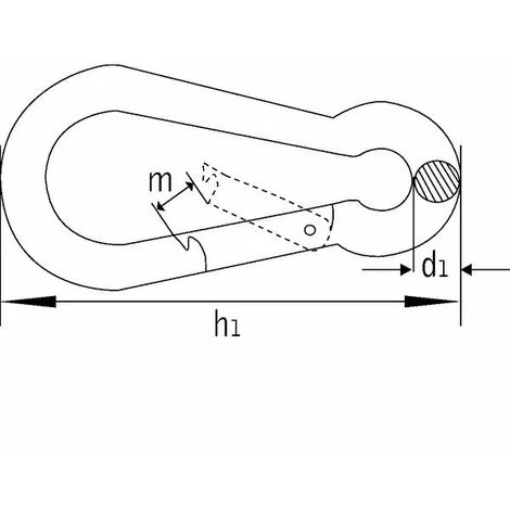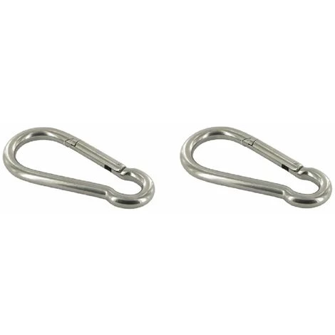 2x Mousqueton ; Matière = Acier Inoxydable ; Diamètre d1 = 5mm ; Longueur h1 = 50mm ; Largeur d’ouverture du crochet m1 = 8mm ; Multiple possibilités d’utiliisation