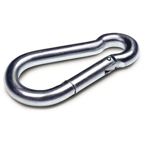 Mousqueton de pompier, acier galvanis� C15 DIN 5299, Forme C, 9×90, charge utile 250. La conception de la charni�re permet de l’utiliser dans des montages rapides, o� l’ouverture possible de cet �l�ment n’est pas compromise et dans des utilisations temporaires qui doivent �tre retir�es avec continuit� ou dans l’urgence. L’accouplement parfait de l’extr�mit� de la charni�re avec l’apex du corps et la qualit� du dispositif de rappel garantissent une s�curit� et une efficacit� maximales.