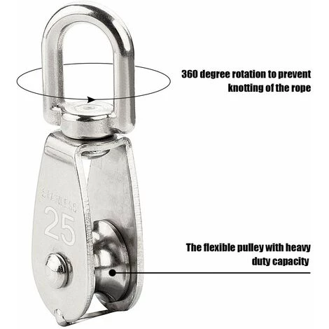 5 Pièces M25 Poulie Simple fabriqué avec matériel d’acier inoxydable 304 pour une utilisation durable et de longue duré. antirouille et anticorrosion avec fonction coulissante lisseSpécification – Couleur: Argent – Matériau: 304 Acier Inoxydable – Taille: Env 83 x 30 x 20mm /3.3 x 1.2 x 0.5 pouce (L * W * H) – Capacité de chargement maximale: 150 kg – Quantité: 5 Pièces – Anti-rouille et résistance à l’usure avec une structure très forte – 360 Degrés de RotationContenu de l’emballage 5 x Poulie Rouleau (M25)