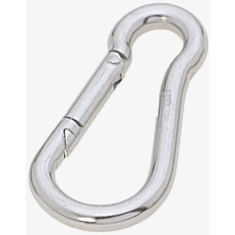 Mousqueton simple. 7mm d’épaisseur, 7 cm de long, 450kg de charge maximale. Idéal pour l’accroche de toile d’ombrage ou de filets pour le sport.
