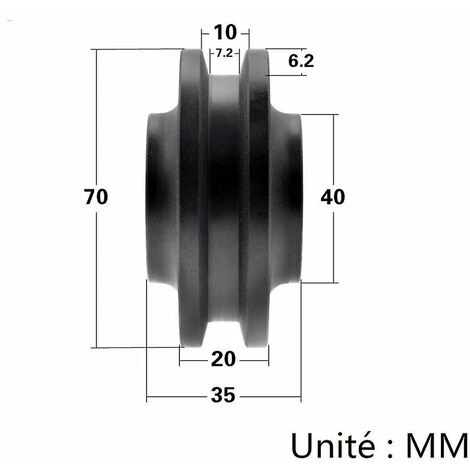 2 roues de porte neuves et de haute qualité. Diamètre 70mm. Largeur 34mm. Trou intérieur 15 mm (35 x 70 x 15 mm) Ce kit de rail de roulement pour porte coulissante aide la porte à maintenir l’équilibre, à empêcher le basculement et à assurer un glissement en douceur. Une roue idéale pour monter soi-même son meuble industriel. Pour fabriquer une porte d’atelier, relativement lourde et deux roues suffisent et roulent bien malgré le poids. Déplacez la porte pour économiser votre espace, décorer et embellir votre maison. Notre roue à gorge est fabriquée en alliage de zinc et en nylon, elle est durable avec des caractéristiques stables et une longue durée de vie. Facile à nettoyer. installer et utiliser. Ce kit de rail de roulement pour porte coulissante aide la porte à maintenir l’équilibre, à empêcher le basculement et à assurer un glissement en douceur. Une roue idéale pour monter soi-même son meuble industriel. Pour fabriquer une porte d’atelier, relativement lourde et deux roues suffisent et roulent bien malgré le poids. Notre roue à gorge est fabriquée en alliage de zinc et en nylon, elle est durable avec des caractéristiques stables et une longue durée de vie. Facile à nettoyer. installer et utiliser. Couleur du produit : noir Quantité livrée : 2 pièces
