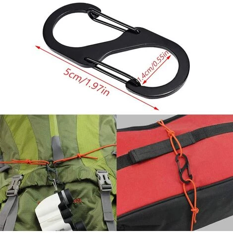 Mousquetons en S pour la randonnée, la pêche, le camping, les porte-clés, les bouteilles de sport, les sacs à dos, etc., et peuvent répondre à divers besoins. Idéal pour suspendre des cordes, des cordes, des clés et autres.
