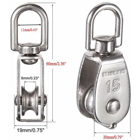 Materiel: 304 en acier inoxydable. Le paquet inclut:4 x M15 Pulley block .