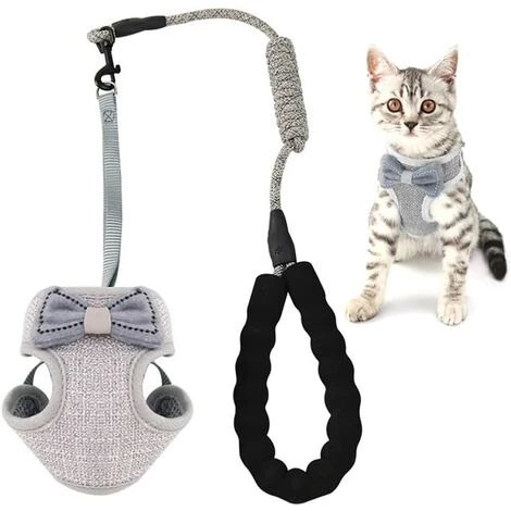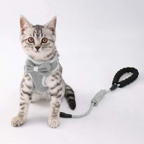 Ensemble harnais et laisse pour chat anti-évasion, bande de gilet ajustable pour chatons doux, harnais gilet en maille respirante, avec laisse de 45 pouces, joli nœud, pour petit moyen