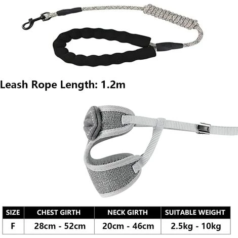 Taille M : poitrine : 28 – 52 cm, cou : 20 – 46 cm, longueur de la laisse : 120 cm