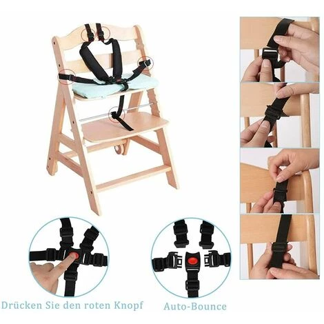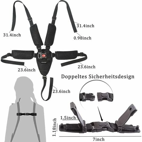 Matériaux de haute qualité : chaise haute à sangle. Toutes les bretelles et le tapis sont en nylon de haute qualité, solides et durables, non toxiques et sans goût et absolument sans danger pour les bébés ou les enfants. Grâce à la boucle de sécurité intégrée à la ceinture à 5 points robuste et réglable, la ceinture de sécurité à 5 points peut être convertie en une ceinture de sécurité à 3 points.