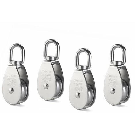 Hauteur totale: 85mm / 3,35″Poids Capacité: 331lbs (150kg) 360 degrés Rotation Design Empêchez la corde / câble / fil de nouer, installation facile et pratique à utiliser, rendre votre travail plus facile. Doucement Tournant Roue Notre produit est antirouille et résistant à la corrosion avec une fonction de glissement lisse. Il équipe de la capacité résistante avec la conception très pratique et la structure super solide. Poulie en acier inoxydable 304 pour intérieur et extérieur Conçu pour une utilisation à l’intérieur et à l’extérieur avec corde / cordon / fil.
