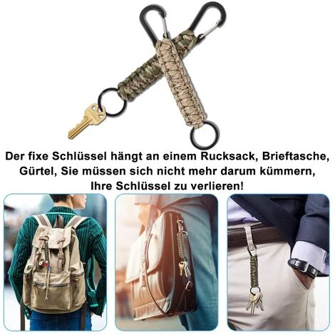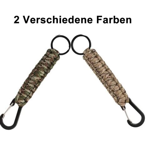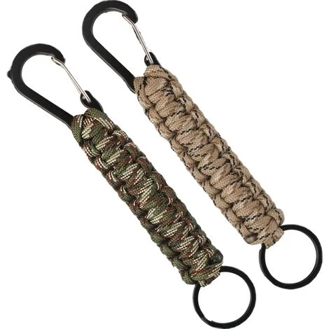 5 x porte-clés Paracord avec mousqueton (noir, vert armée, marron, bleu marine, camouflage désert)