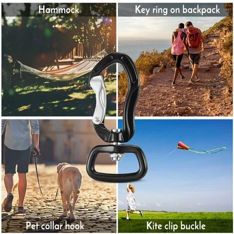 Un mousqueton et une bague à grille reliés à un axe en métal, lisse et sans frottement; Rotation de 306 ° pour éviter la torsion de la corde du hamac. Construit en aluminium aéronautique pour un service fiable comme attache pour hamac, anneau de suspension sur sac à dos et fixation de bouteille de sport.
