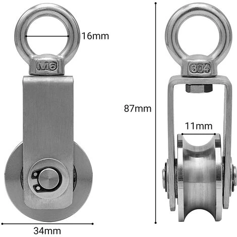 READCLY Poulie Avec 2 Roulements, Poulie Pour Cable, 34mm Poulie Inox 304