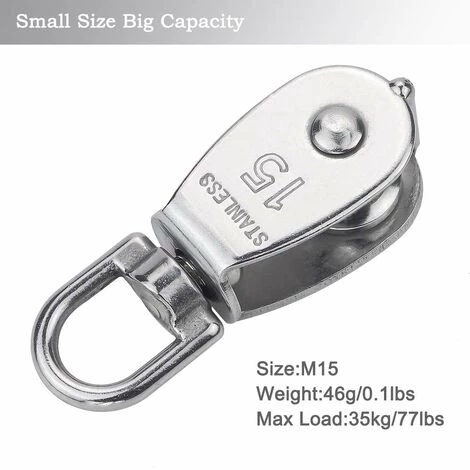【Petite taille grande capacité】Taille: M15; Diamètre de la roue: 15mm / 0,59 ″; Largeur de roue: 6mm / 0,23 ″; Largeur de la bague rotative: 11mm / 0,43 ″; Longueur totale: 60 mm / 2,36 ″; Charge maximale: 35kg / 77lbs. Quel rouleau simple mais puissant.