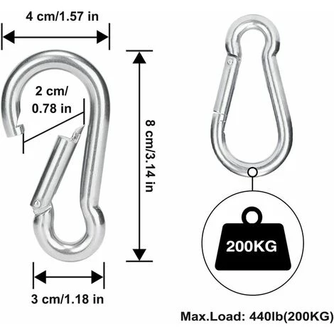 Crochet mousqueton robuste: en acier inoxydable 304, qui est étanche, antirouille, solide et durable.