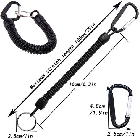 La spirale est faite de plastique flexible de haute qualitĂ©, d’un porte-clĂ©s sur un cĂ´tĂ© et d’un mousqueton Ă l’extrĂ©mitĂ© opposĂ©e. Mousqueton robuste, cordon en caoutchouc durable, facile Ă utiliser et Ă installer. Connectez vos outils, clĂ©s, sacs Ă bouteilles, ceinture ou sac Ă dos pour Ă©viter que quoi que ce soit ne se perde.
