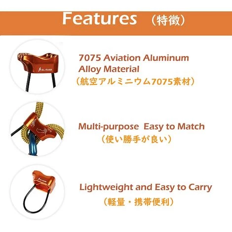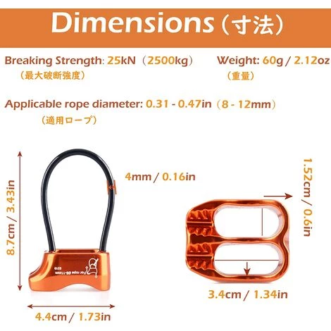 【Application】 : L’appareil d’assurage peut être compatible avec des cordes à double, jumelées et à simple d’un diamètre de 8 à 12 mm