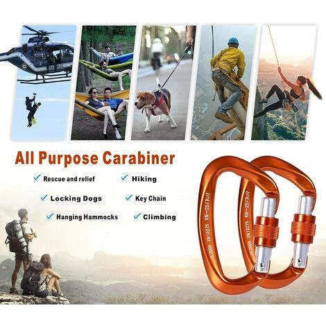 【AMAZING MULTI-FUCTION CARABINER】 Les mousquetons D Ring sont très adaptés pour la maison, la randonnée en plein air, la pêche, le camping, les voyages, la descente en rappel, le sauvetage, le verrouillage des hamacs, la balançoire, la laisse et le harnaispour chiens, les sacs lourds, etc. Le système de verrouillage gardera vous pouvez également utiliser le mousqueton comme un porte-clés.