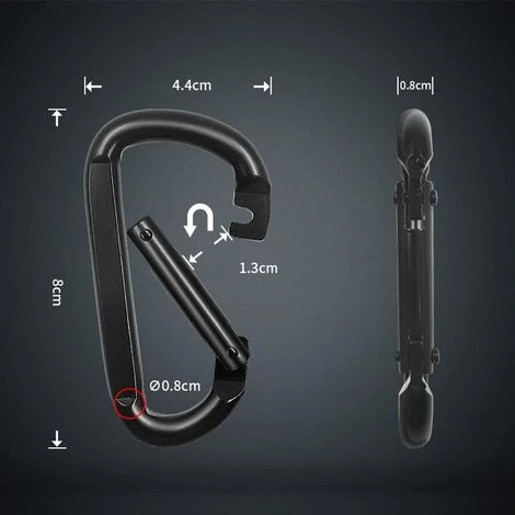 1.Les mousquetons s’ouvrent très facilement avec un clip à ressort et se referment automatiquement dès que vous lâchez prise.