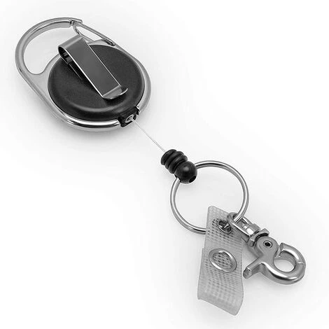 【ROL DE BADGE SANS FIL】 Fabriqué en alliage de zinc, en plastique dur et avec un cordon rétractable robuste. Ces rouleaux d’identification sont durables, sécurisés et sans perte.