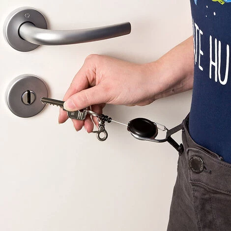 Mode d’emploi : placez le porte-clés sur la ceinture, placez la clé sur le porte-clés et étirez-le pour ouvrir la porte lorsque vous l’utilisez. Lâchez-le lorsqu’il n’est pas utilisé, il reviendra automatiquement à la taille, évitant la perte fréquente de clés causée par un lancer aléatoire.