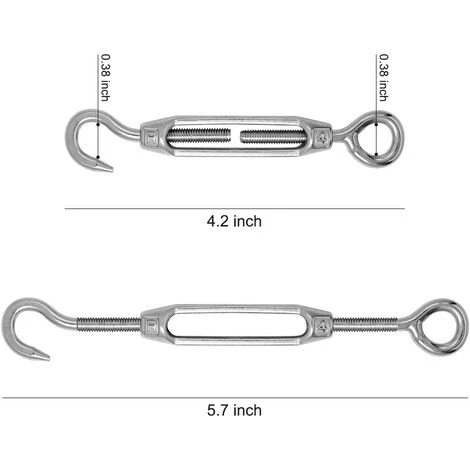 - Contenu de l’emballage : 6 * yeux et crochet turnbuckle, 4 * ressort en acier inoxydable mousqueton.