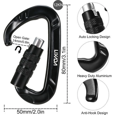 1. Ce mousqueton juste pour la fonction auxiliaire n’est pas le principal mousqueton porteur lourd (> 18KN).