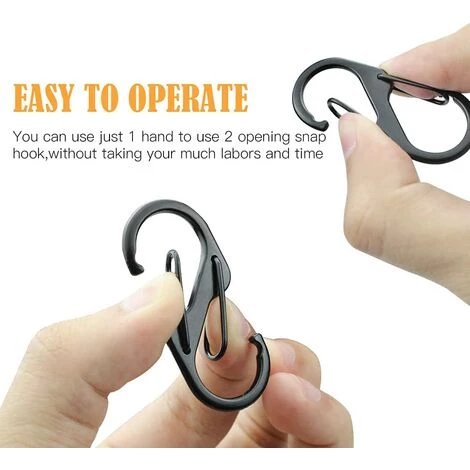 S-Clip : chaque mini mousqueton durable a 2 ouvertures de porte pour fournir 2 grands espaces séparés permettant aux personnes de tenir plus facilement la plupart des petits objets, c’est une excellente option pour les randonneurs, les campeurs, les photographes ou toute autre personne. Excellent outil pour les personnes avec des sacs.