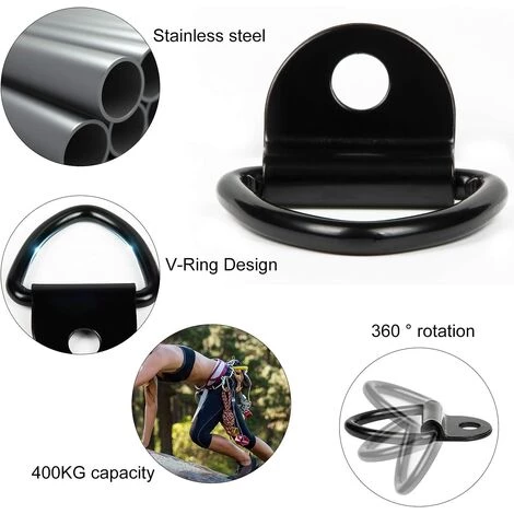 【Large gamme d’applications】 : Ancres à anneau en D adaptées aux remorques, camions, vélos, VTT, UTV, quads, motos, plateaux, VUS, bateaux, entrepôts, garages, matériel de camping, machinerie lourde et outils électriques et autres charges