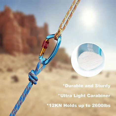 【Alliage D’aluminium Aviation 7075】La capacité de charge des mousquetons verrouillables : 2 500 KG longitudinalement, 700 KG horizontalement, garantissant qu’il peut être utilisé pendant plus de 10 ans