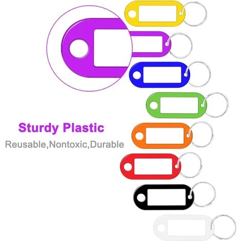 40 porte-clés tag de 8 couleurs différentes : rouge, blanc, vermillon, bleu, vert, noir, orange et violet.