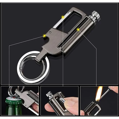 [Matériau] : le produit est fabriqué en alliage de zinc de haute qualité, robuste et durable.【Fonction trois en un】 : ce n’est pas seulement un allumage de survie en plein air, mais peut également être utilisé comme ouvre-bouteille et porte-clés.